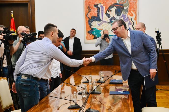 Predsednik Republike Srbije Aleksandar Vučić primio je u zgradi Predsedništva na Andrićevom vencu delegaciju studenata koji žele da uče sa kojima je razgovarao o svim aktuelnim dešavanjima.