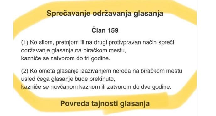Sprečavanje održavanja glasanja je TEŠKO KRIVIČNO DELO!
