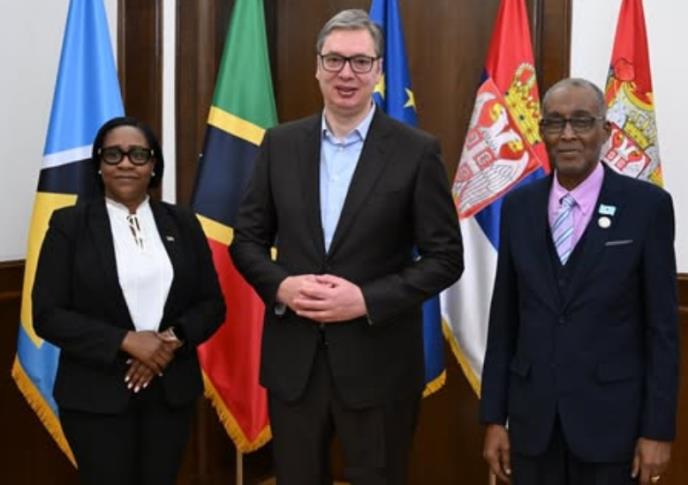 BEOGRAD - "Srdačan i prijateljski susret sa predsednicima parlamenata Svete Lucije i Sent Kitsa i Nevisa. Razgovarali smo o aktuelnim globalnim temama, širenju sveobuhvatne saradnje, uzajamnoj podršci u međunarodnim forumima, a posebno o jačanju mesta i uloge malih država na svetskoj geopolitičkoj sceni", poručio je predsednik Srbije Aleksandar Vučić posle sastanka s predsednicom Parlamenta Federacije Svetog Kristofera i Nevisa Lanein Blanšet, predsednikom Parlamenta i ministrom unutrašnjih poslova Svete Lucije Klaudiusom Fransisom i Džeremajom Norbertom.