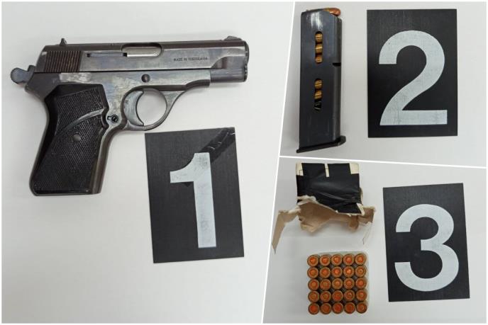 U vozilu marke "Škoda" kojim je upravljao, u torbici je pronađen pištolj marke CZ 765, brušenog serijskog broja, sa okvirom u kojem se nalazilo 7 komada metaka i fabrička kutija sa 25 komada pripadajuće municije.