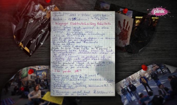 Naime, iz konteksta navedenog teksta napisanog rukom može se zaključiti da je reč o planovima studenata u blokadi tokom protesta koji je najavljen na Vidovdan u Beogradu. Takođe, navedena je mogućnost da nakon 28. juna blokaderi organizuju "Pena parti kod Žeksa" (reč je o vlasniku TV "Pink" Željku Mitroviću), krečenje i deratizaciju stranačkih lokala (najverovatnije se misli na prostorije SNS-a), "oslobađanje" zgrade RTS-a, realizacija akcije "Pink Panter", kao za Republičku izbornu komisiju, ali usmerenu prema medijskoj kući Pink.