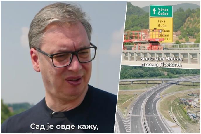 - Ovde kažu 45 stepeni na suncu, ne znam kako to mere, ali predivan je osećaj. Vidite kada završite i uradite nešto veliko. Nalazim se na putu Pakovraće, malo iza tračka prema Požegi, 24 nova kilometra. Ovo je tunel Laz za nas, ispred nas je Munjino Brdo. Poradili smo nešto što je bio san generacija i u šta je malo ko verovao. Ovo mi pokazuju koliko je Srbija napredovala. Povezujući region, povezujući ljude, stvaramo dobru osnovu za budućnost naše zemlje. Nastavićemo da radimo i da gradimo. U radu leže naše buduće pobede, naš veliki uspeh i naša budućnost - naveo je Vučić.