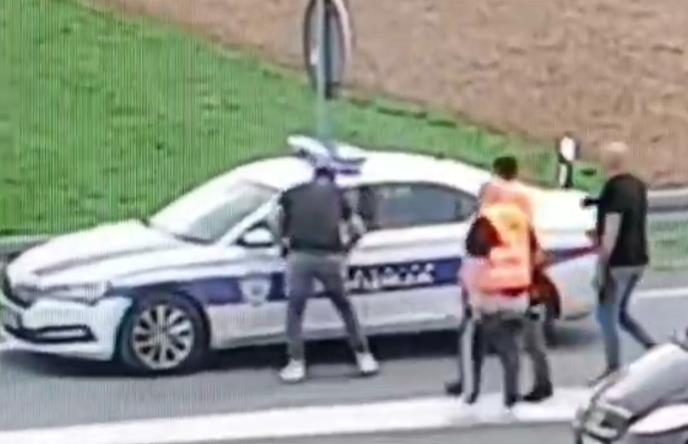 Kada je policajac pokušao da izađe iz vozila kako bi pokupio službene spise, drugi nasilnik mu je prišao, uhvatio ga za prsluk i zapretio rečima: