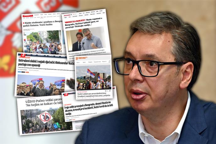Hrvatski Danas u naslovu kao da priziva nasilje: "Raste napetost u Beogradu, Vučićevi tabloidi gore, on poručuje: 'Očekujte nasilje'". Treba napomenuti da je etiketa "Vučićevi tabloidi" rezervisana za medije u Srbiji koji izveštavaju na način koji ne odgovara hrvatskim medijima i određenim političkim strukturama.