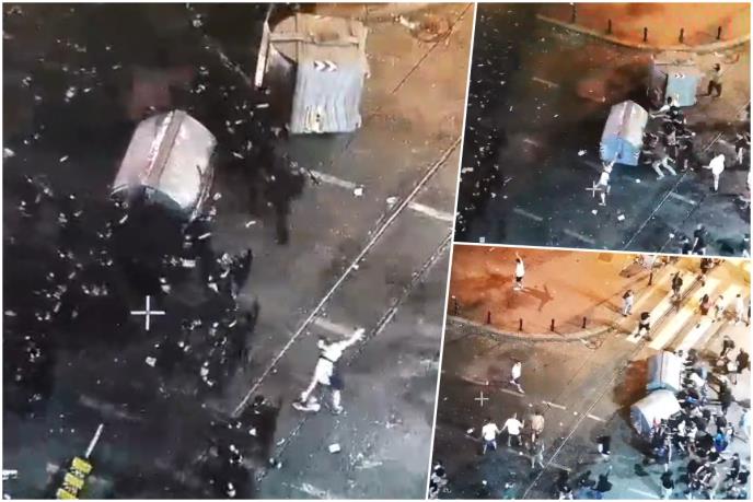 ....a onda su odlučili da na kordon policije guraju kontejnere!