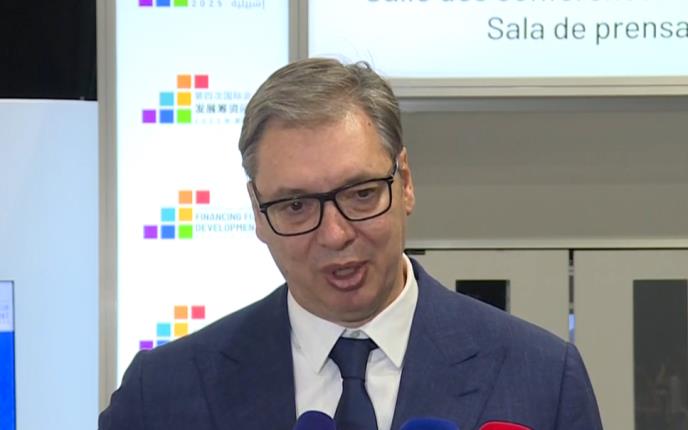 Predsednik Srbije Aleksandar Vučić dao je izjavu za medije nakon održanog govora u Sevilji, gde učestvuje na IV međunarodnoj konferenciji Ujedinjenih nacija o finansiranju razvoja.
