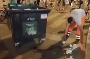 Ostavljaju ulice Beograda zatrpane prevrnutim kontejnerima, smećem i flašama, a dok je radnik Gradske čistoće radio svoj posa, oni su mu se smejali.