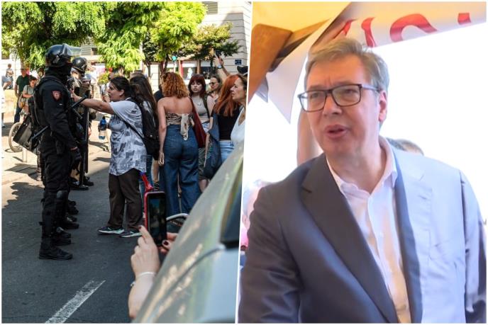 "Što se tiče ovih raznih stručnjaka za ljudska prava, pa oni svi učestvuju u obojenoj revoluciji. Svi i to nije nikakva novost, to nije ništa drugačije. Ali vidi narod i ono čega se ja plašim, to se juče dogodilo na jugu Srbije, gde s ljudi iz tri autobusa izlazili, gde su sklanjali kontejnere i sklanjali ljude koji su stajali iza kontejnera", naveo je Vučić i istakao da policija mora da bude na terenu.