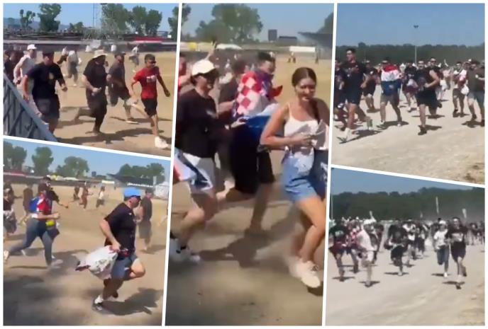 Na društvenim mrežama šire se bizarni snimci, a korisnici ih opisuju kako "ustaška mladež juri pre početka koncerta da zauzme što bolje mesto na ovom ustaškom orgijanju u srcu Evrope."