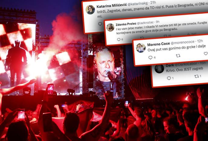 "Izdrži, Zagrebe, danas, znamo da TO nisi ti. Pusa iz Beograda, ni ONI nismo mi", aludirajući da je neki drugi, imaginarni Zagreb podjednako "urban" kao ovaj blokaderski u Srbiji, pa im je neko drugi nametnuo njihovog pevača, naredio valjda državi da mu organizuje koncert, a mučene "urbane" Zagrepčane naterao u velikom broju ne samo da dođu već i da prethodno kupe karte za koncert.