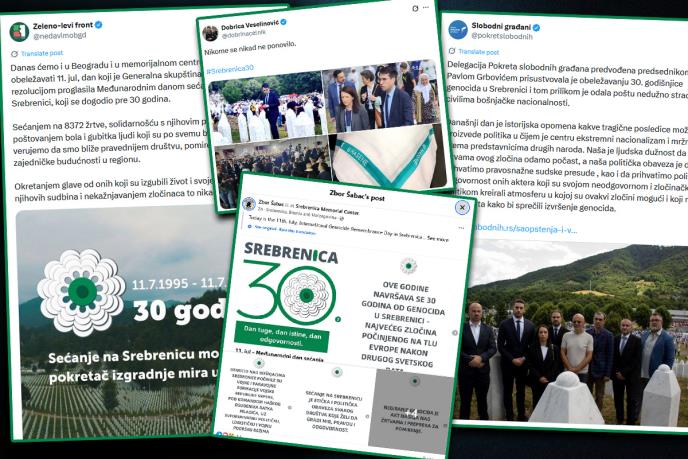 - Genocid nad Bošnjacima Srebrenice počinile su vojne i paravojne formacije Vojske Republike Srpske, pod komandom haškog osuđenika Ratka Mladića, uz sveobuhvatnu političku, logističku i vojnu podršku režima Slobodana Miloševića. Sećanje na Srebrenicu je etička i politička obaveza svakog društva koje želi da gradi mir, pravdu i odgovornost. Negiranje genocida je akt nasilja nad žrtvama i prepreka za pomirenje - naveli su u objavi.