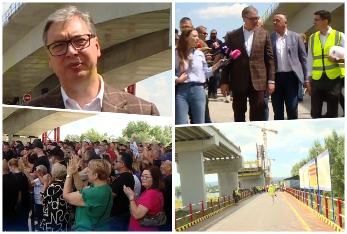 - Ovaj most je 70 odsto završen, zavšićemo ga pre kraja 2026. godine, biće spojen u celosti do aprila. Naše kineske kompanije rade dobro i oni će pre kraja godine da završe iskopavanje obe cevi Fruškogorskog koridora, duple cevi sa obe strane, sedam kilometara. To će biti najduži tunel u Srbiji. Hoću još jednom da se zahvalim Si Đinpingu na ogromnoj podršci i nastavićemo da gradimo naše prijateljstvo. Vama građani da se zahvalim što ste izdržali teror blokadera i fokusirali smo se na napredak. Mnogo toga je pred nama, ponosan sam na Srbiju koja gradi i radi. Uveren sam da smo na putu pobede i siguran da niko Srbiju ne može da zaustavi. Ono št oje bio cilj onih koji su spolja organizovali obojenu revoluciju je da Srbija stane, na kraju i uprkos tome i svim njihovim naporima mi smo uspevali da nastavimo da radimo i gradimo. Naš interes je budućnost ove zemlje, Srbije i budućnost naše dece. Uskoro otvaramo prugu Novi Sad - Subotica, do Budimpešte najkraće, najbrže da stignete i sve su to ogromni uspesi i rezultati. Veoma sam ponosan na sve što smo učinili i što planiramo da uradimo. Do kraja godine ćemo još 25 do 30 km da otvorimo brze saobraćajnice Dunavske magistrale, idemo Požarevac - Gradište - Golubac, da spajamo Braničevski, Borski okrug, sa ostatkom Srbije.