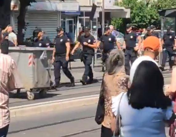 Kako se vidi na snimcima na društvenim mrežama, blokaderi sa VIŠER-a postavili su kontejnere u nameri da blokiraju ulicu, ali je policija sklonila kontejnere i naložila okupljenima da se sklone sa kolovoza.