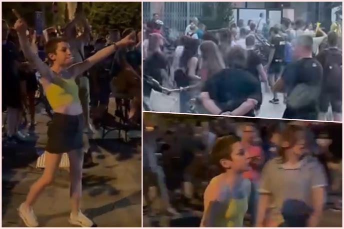 Jedna blokaderka je sa velikom dozom agresije duvala u pištaljku, pokazivala srednji prst, a u jednom trenutku i nasrnula prema kameri koja ju je snimala izgovarajuću "što, šta..."