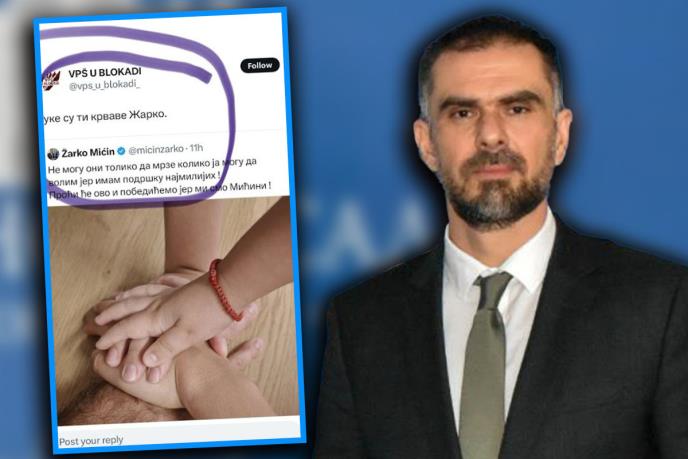 Na toplu porodičnu poruku Mićina, koja apsolutno nikog ne vređa i ne omalovažava, blokaderi koji sebe zovu Mračni jahači napisali su čistu fašističku poruku: "Ruke su ti krvave, Žarko", što je van svake pameti, jer je Mićinova fotografija bila potpuno porodična a ne lična ili u svojstvu političara, što još samo jednom dokazuje potpuno bezumlje i ogoljenu silu blokadera koji više ne biraju sredstva niti imaju ijednu crvenu liniju poput dece.