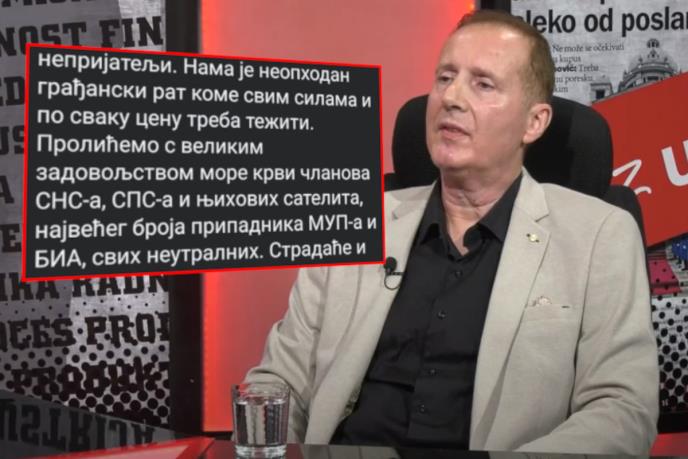 NEKA POGINE MILION SRBA, PROLIĆEMO MORE KRVI ČLANOVA SNS, MUP I BIA! Bolesne reči profesora blokadera, ovo samo MONSTRUM može da izjavi (FOTO)