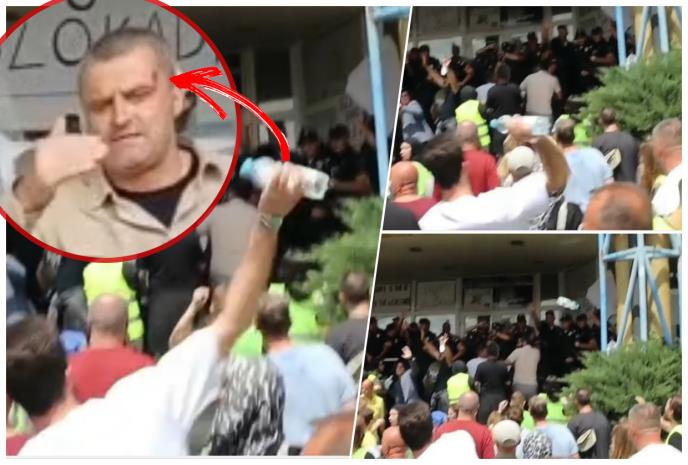 Načelnik Ljajić je sve vreme pokušavao da razgovara s demonstrantima i smiri situaciju, međutim kako se vidi na snimcima koji se dele na društvenim mrežama, jedan od blokadera bacio je flašu s vodom prema pripadnicima policije, a ona je pogodila Ljajića u glavu, u levu arkadu.