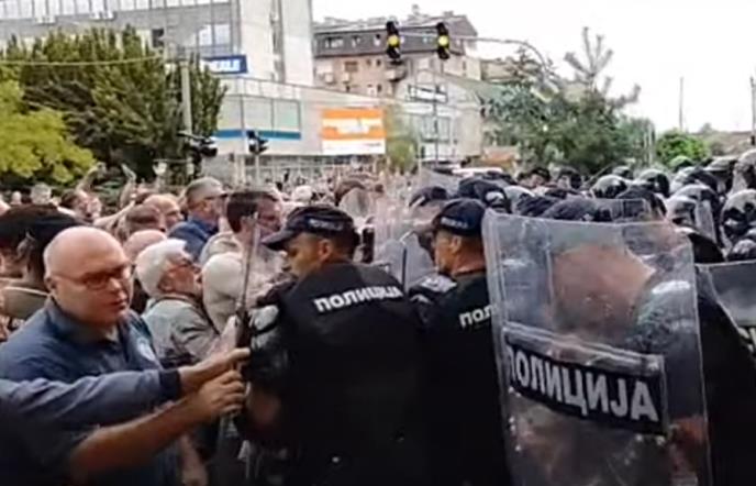 Demonstranti su, navodno, ušli u sukob s policijom i gađali pripadnike snaga bezbednosti jajima.