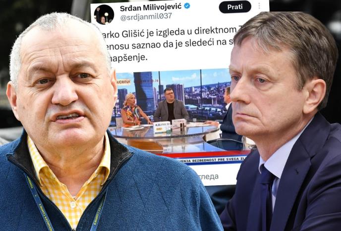 - Darko Glišić izgleda u direktnom TV prenosu saznao da je sledeći na spsku za hapšenje - napisao je Srđan Millivojević u objavi na "X", koju je ubrzo obrisao, aludirajući da je stanje Glišića fingirano i nije toliko ozbiljno, iako je cela Srbija u programu uživo gledala portresne scene kako se Glišić bezuspešno trudi da odgovori na pitanje novinara, dok mu se na licu jasno vide prvi simptomi moždanog udara.