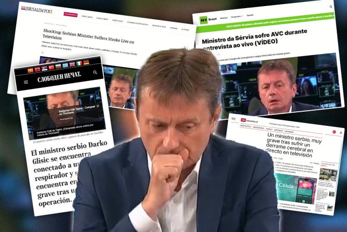 Vest o moždanom udaru koji je u programu uživo 5. avgusta doživeo ministar za javna ulaganja i visoki funkcioner SNS Darko Glišić, a od koga se trenutno oporavlja u KCS, preplavila je svetske medije od Brazila, preko Grčke, Švajcarske, Makedonije pa sve do Izraela.