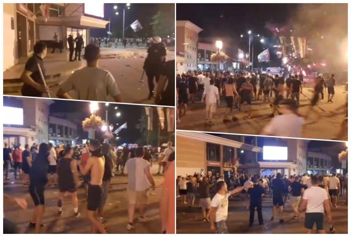 BLOKADERI PRAVE HAOS U VRBASU! Naoružani drvenim motkama pokušavaju da se probiju do prostorija SNS: Gađaju policiju i traže obračun! (VIDEO)