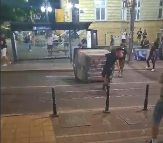 Oni su, nakon što su napadali građane i policiju počeli da prevrću kontejnere.