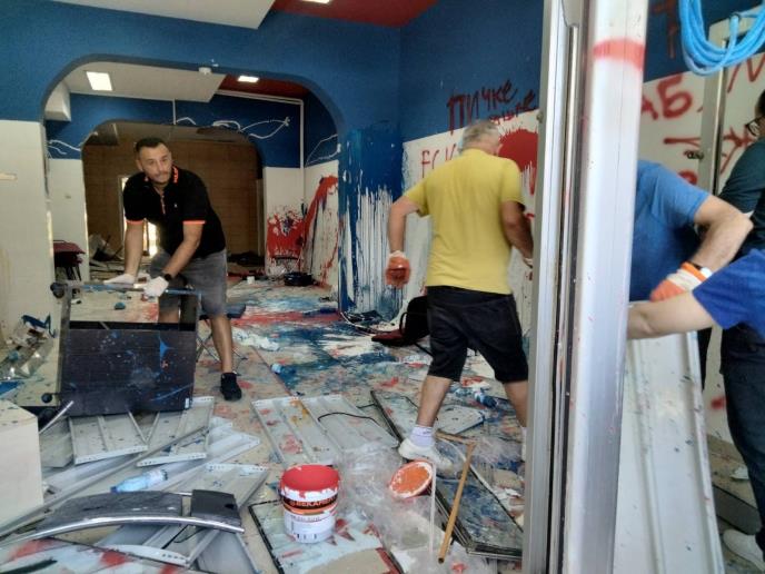 Ujedinjeni, građani čiste šut i staklo koji su ostali kao posledica nezapamćenog divljačkog nasilja blokadera. U jezivom napadu blokadera razbijena su stakla, uništen inventar, polomljene i isprevrtane stvari, zidovi i podovi ofarbani farbom...