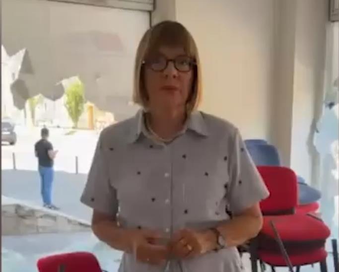 Predsednica Pokrajinske vlade Maja Gojković obratila se iz stranačkih prostorija SNS u Stražilovskoj ulici u Novom Sadu koje su blokaderi potpuno uništili prethodne noći.