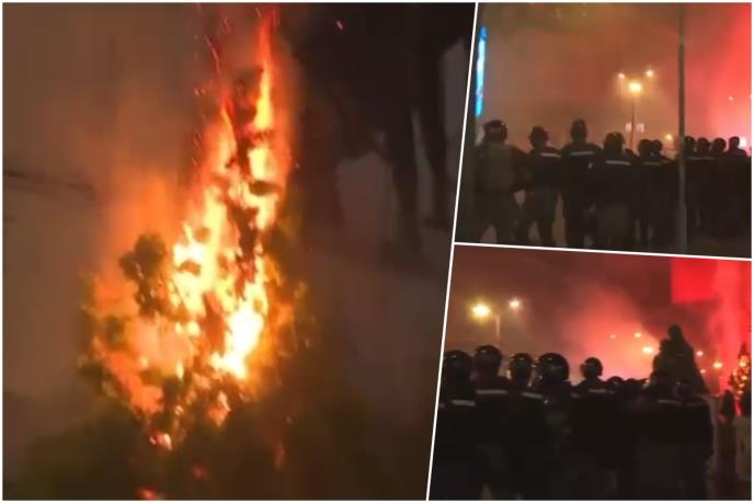 Naime, blokaderi su isprevrtali kontejnere po Ulici kneza Miloša, a potom počeli da zasipaju policiju pirotehnikom, hemijskim sredstvima i staklenim klikerima, dok je policija za sve to vreme stajala mirno i trpela nasilje.