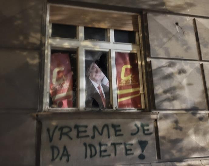 Blokaderi su razbili i uništili prostorije Pokreta socijalista čiji je osnivač Aleksandar Vulin i ispisali poruku "Vreme je da idete".