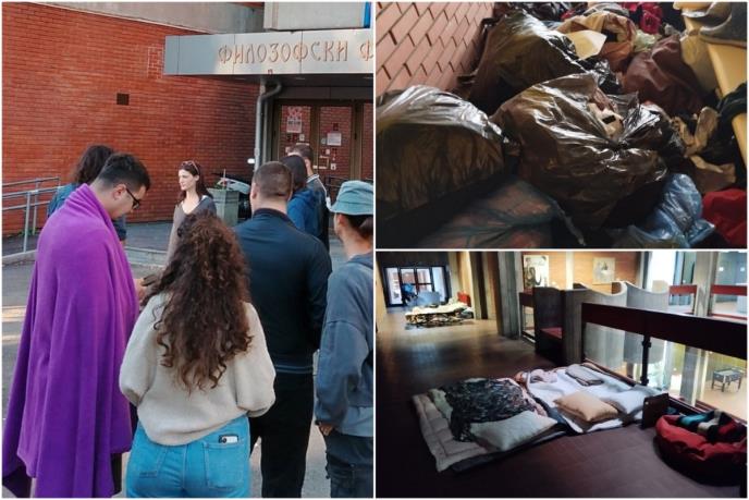 Nakon što su blokaderi jutros napustili zgradu Filozofskog fakulteta, u prostorijama je zatečeno mnogo nereda, prljavštine i oštećenja. Simbolika koju su blokaderi koristili, uključujući izradu maketa sanduka, ostavlja, kako pišu novosadski mediji morbidan utisak, duboko neprimeren akademskom prostoru.