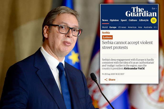 Predsednik Srbije Aleksandar Vučić odgovorio je "Gardijanu" na stav koji su izneli o protestima u Srbiji, ističućida nasilni protesti ugrožavaju institucije i da Srbija ostaje posvećena demokratiji i evropskim integracijama.