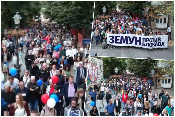 Reka ljudi je snimljena u Zemunu, nakon skupova širom prestonice.
