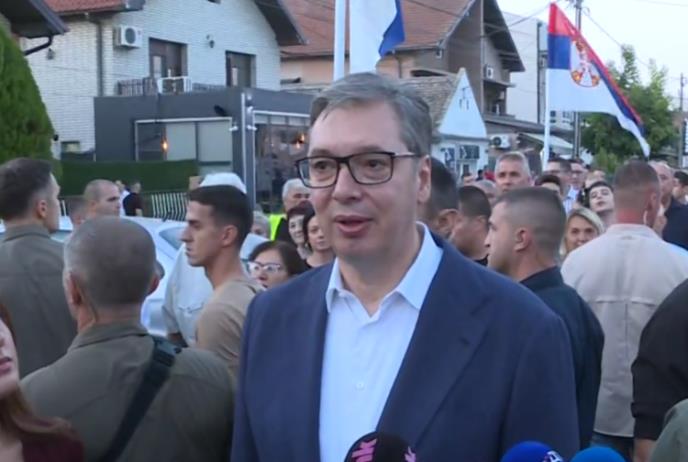 Vučić je naveo da je u pitanju porodični skup koji je pre svega miran, a koji podržava većina građana Srbije, a potom odgovarajući na pitanja novinara komentarisao smenu bivšeg komandanta Specijalne antiterorističke jedinice Spasoja Vulovića.
