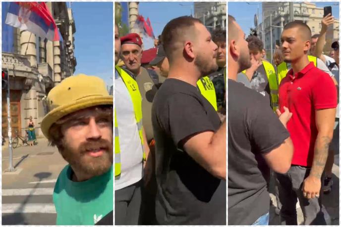 Naime, on je mirno šetao raskrsnicom Nemanjine i Kneza Miloša, kada ga je masa muškaraca opkolila i počela besomučno da ga vređa i preti. Zanimljivo je da je među “mirnim studentima” koji su se istakli u pretnjama najviše bilo tetoviranih muškaraca, kao i onih sumnjivog ponašanja koji su tiktokera gurali, saplitali i bukvalno fizički izgurivali sa svog skupa.