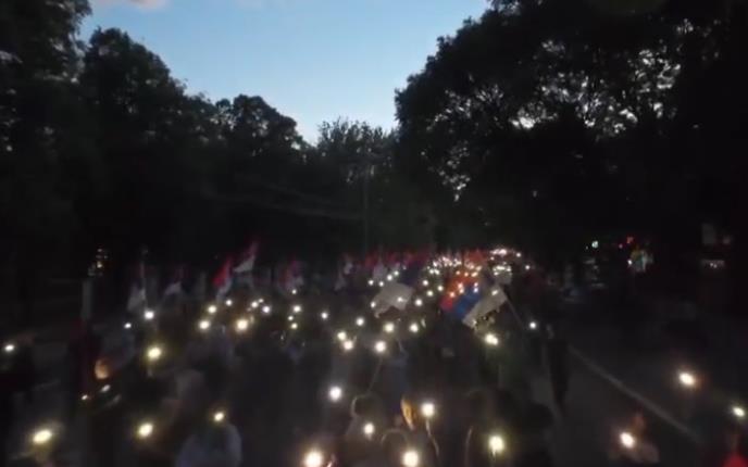 Tom prilikom građani su upalili bliceve na telefonima, i tada se mogla videti ogromna, osvetljena kolona ljudi.