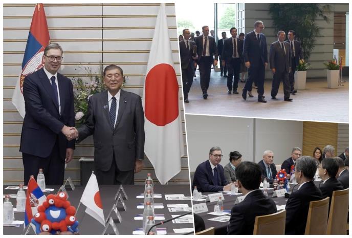 Prethodno se predsednik Vučić sastao sa Njegovim Veličanstvom carem Japana Naruhitom i tom prilikom istakao da taj susret otvara novu stranicu u bilateralnim odnosima i šalje jasnu poruku da Srbija i Japan zajedno gledaju u budućnost, prenose Novosti pisanje Tanjuga.
