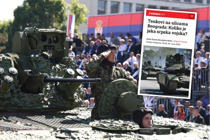 "Tenkovi na ulicama Beograda: Koliko je jaka srpska vojska?", odjekuje naslov teksta na zagrebačkom Indexu, preuzet za tu "prigodu" sa Dojče vele (DW), koji je dao naslov "Vojna parada u Beogradu: između zastrašivanja i simbolike".