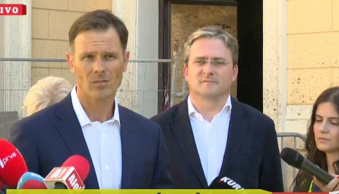 Ministar finansija Siniša Mali i ministar kulture Nikola Selaković obilaze radove na Istorijskom muzeju Srbije, koji će biti izmešten u zgradu Železničke stanice na Savskom trgu u Beogradu.