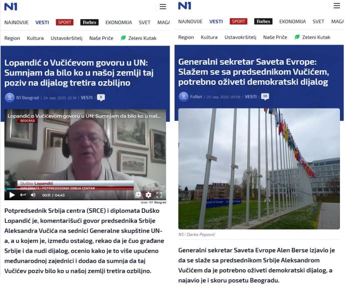 Potpredsednik Srbija centra (SRCE) Duško Lopandić zlonamerno je tumačio poruke predsednika Srbije Aleksandra Vučića pred Generalnom skupštinom UN i tako pokušao da obesmisli iskrene apele za neophodnost uspostavljanja dijaloga.