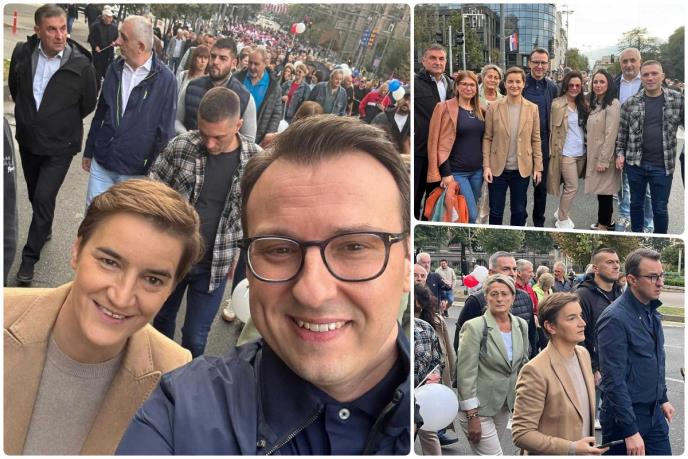 ANA BRNABIĆ U ŠETNJI SA BEOGRAĐANIMA NA SKUPU "GRAĐANI PROTIV BLOKADA" Pridružio joj se i Petar Petković, fotografisali se sa ljudima (FOTO)