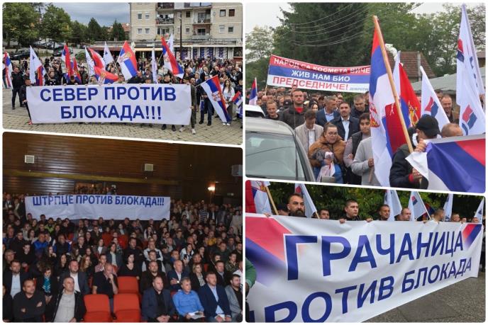 Više hiljada Srba na severu Kosova i Metohije, Sočanici, u Gračanici, Kosovskom Pomoravlju, Štrpcu održali su skupove i šetnje sa kojih su poručili da ne žele zaustavljanje Srbije, da su protiv blokada i onih koji bi da unazade i oslabe Srbiju kako bi bila lak plen onima koji našem narodu ne žele ništa dobro!