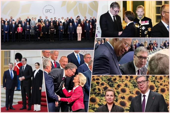 Vučić se danas u Kopenhagenu sastao s nemačkim kancelarom Fridrihom Mercom, tokom sedmog Samita Evropske političke zajednice u Kopenhagenu. Slede sastanci s premijerom Portugalije Luišom Montenegrom i generalnim sekretarom NATO Markom Ruteom.