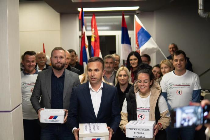 "Srpska napredna stranka (SNS) predala je večeras Opštinskoj izbornoj komisiji izbornu listu 'Aleksandar Vučić – Najbolje za Mionicu!' koju su podržali koalicioni partneri Socijalistička partija Srbije (SPS), Partija ujedinjenih penzionera, poljoprivrednika i proletera Srbije (PUPS) i Srpska radikalna stranka (SRS)", navodi se u saopštenju Opštinskog odbora Mionica u kome se dodaje: