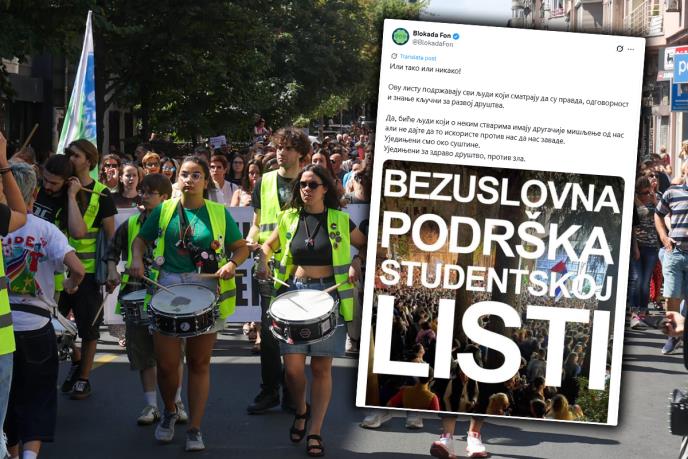 - Ili tako ili nikako! Ovu listu podržavaju svi ljudi koji smatraju da su pravda, odgovornost i znanje ključni za razvoj društva. Da, biće ljudi koji o nekim stvarima imaju drugačije mišljenje od nas, ali ne dajte da to iskoriste protiv nas da nas zavade. Ujedinjeni smo oko suštine - napisali su na profilu "Blokada FON" pored fotografije na kojoj se poziva na bezuslovnu podršku studentskoj listi.