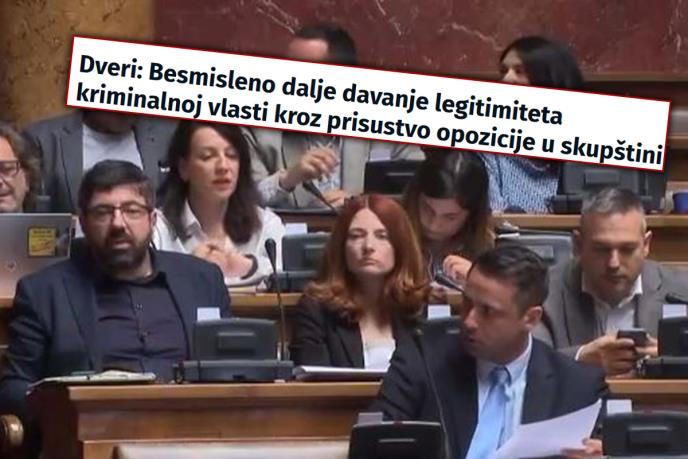 Rat u redovima blokaderske opozicije se nastavlja! Pokret Dveri ocenio je danas da je "potpuno besmisleno" dalje davanje legitimiteta, kako su naveli, aktuelnoj "kriminalnoj" vlasti kroz prisustvo opozicije na sednicama Narodne skupštine čije je jesenje zasedanje počelo juče.