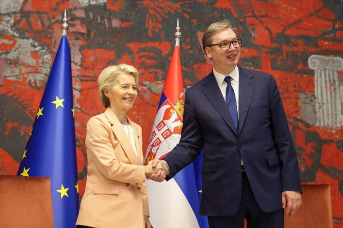 Predsednik Srbije Aleksandar Vučić izjavio je danas da nas sledeće nedelje očekuje velika poseta predsednice Evropske komisije Ursule fon der Lajen Beogradu i da ćemo i tu, kako je rekao, videti šta možemo i šta nam je činiti.