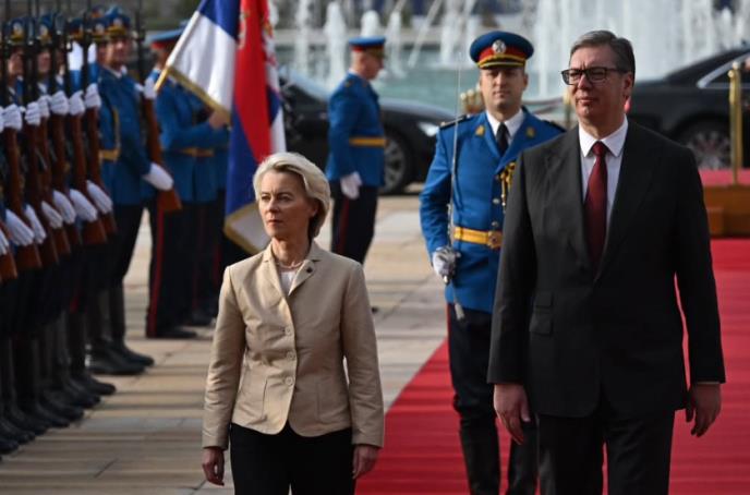 - Zahvalan sam Ursuli fon der Lajen na jasnoj poruci da evropska budućnost može da postane realnost za sve narode koji dele vrednosti EU. Srbija, kao i uvek do sada, ostaje ozbiljan i odgovoran partner na tom teškom i izazovnom putu, zaključio je predsednik Vučić na ceremoniji svečanog dočeka predsednice Evropske komisije Ursule fon der Lajen, koja boravi u zvaničnoj poseti Srbiji.