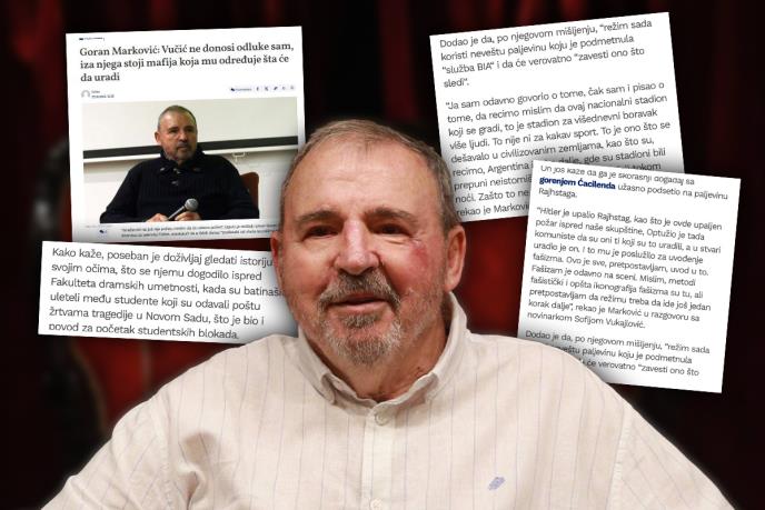 Reditelj Goran Marković je po svemu sudeći potpuno izgubio kompas! Pored toga što olako pominje Hitlera, u poslednjem intervjuu izneo je još više poređenja Srbije i fašističke Nemačke, Nacionalni stadion uporedio sa koncentracionim logorom, a usput izneo i niz netačnih informacija.
