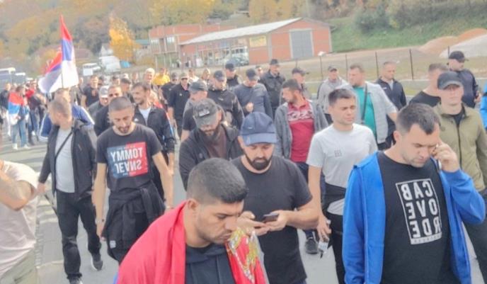 NI LOŠE VREME IH NE ZAUSTAVLJA, ORI SE PESMA "LAZARICA" Srbi sa KiM nastavljaju pešačenje ka Novom Sadu